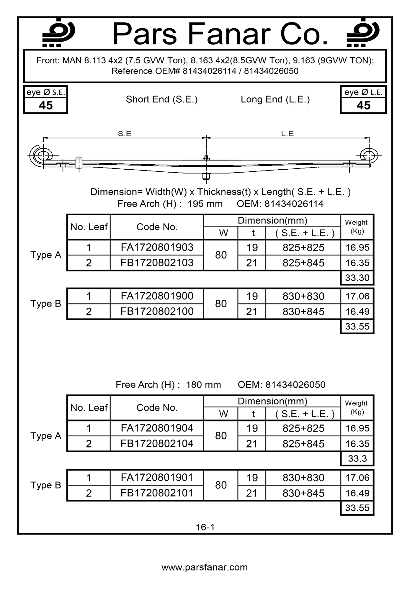 | قوس آزاد (H) فنر تخت | 180, 195 |