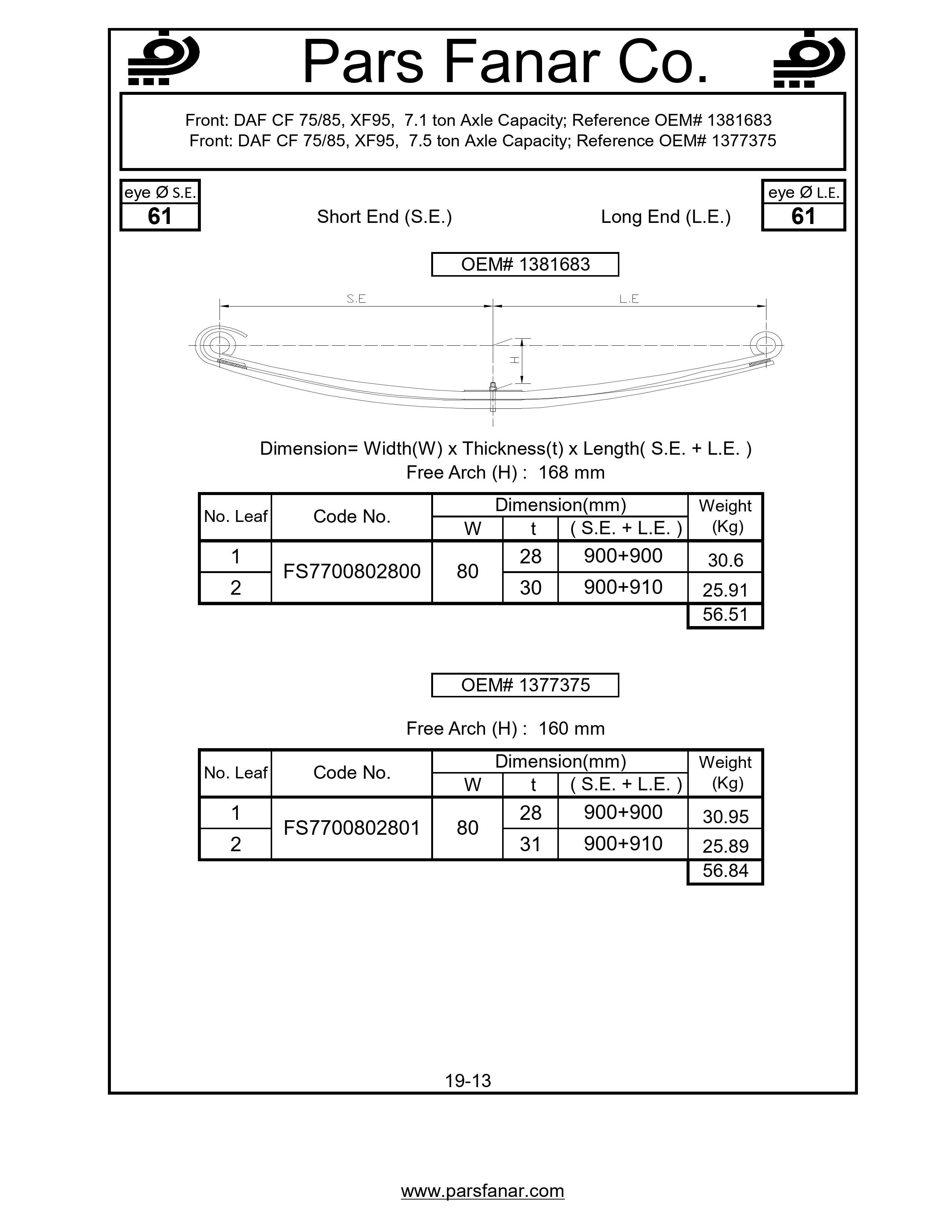 | طول لبه بلند (LE) فنر تخت | |
