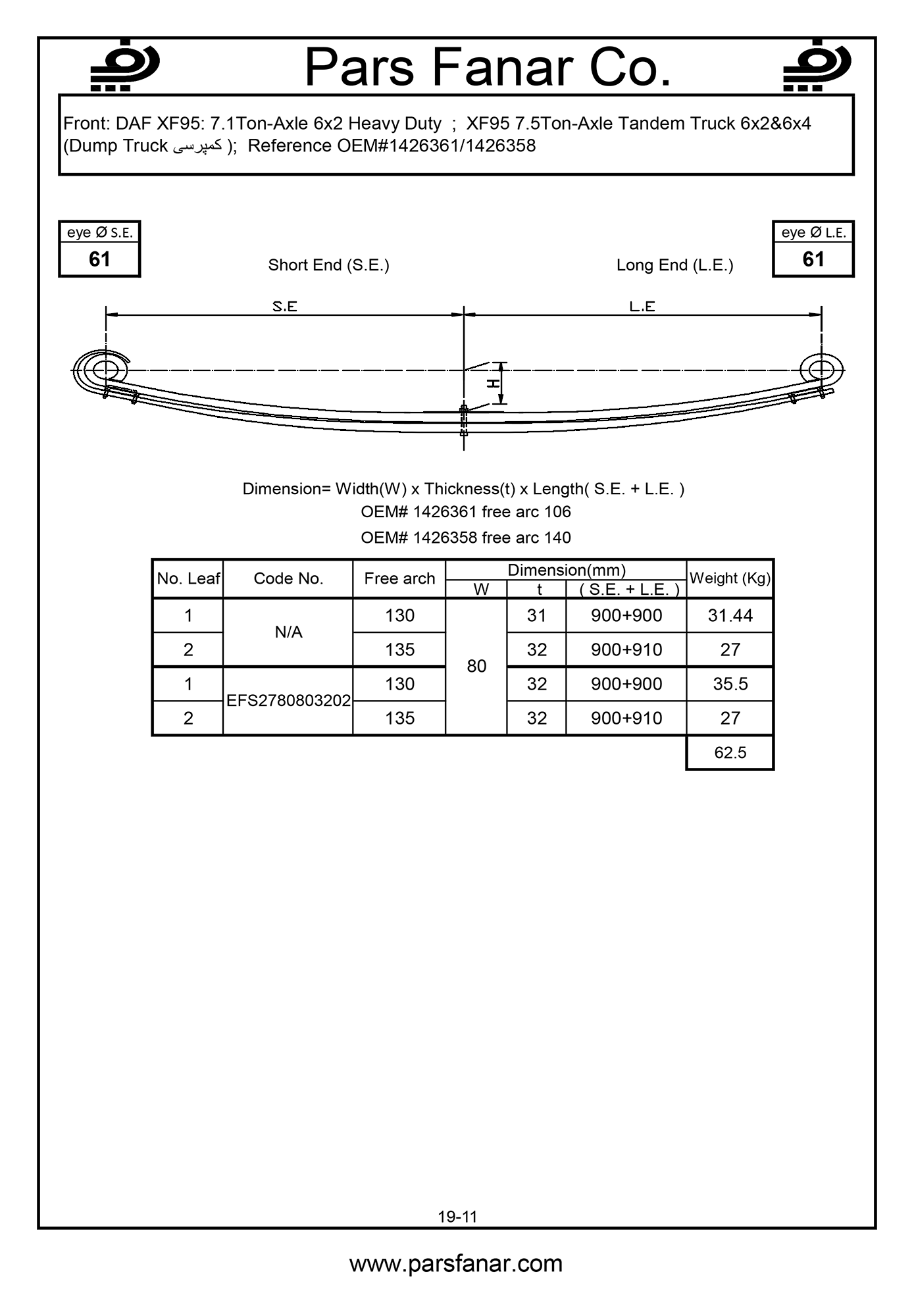 | نام خودرو/کابین/تریلی | DAF XF95 7.5Ton-Axle Tandem Truck 6×2&6×4 (Dump Truck کمپرسی ), DAF XF95: 7.1Ton-Axle 6×2 Heavy Duty |