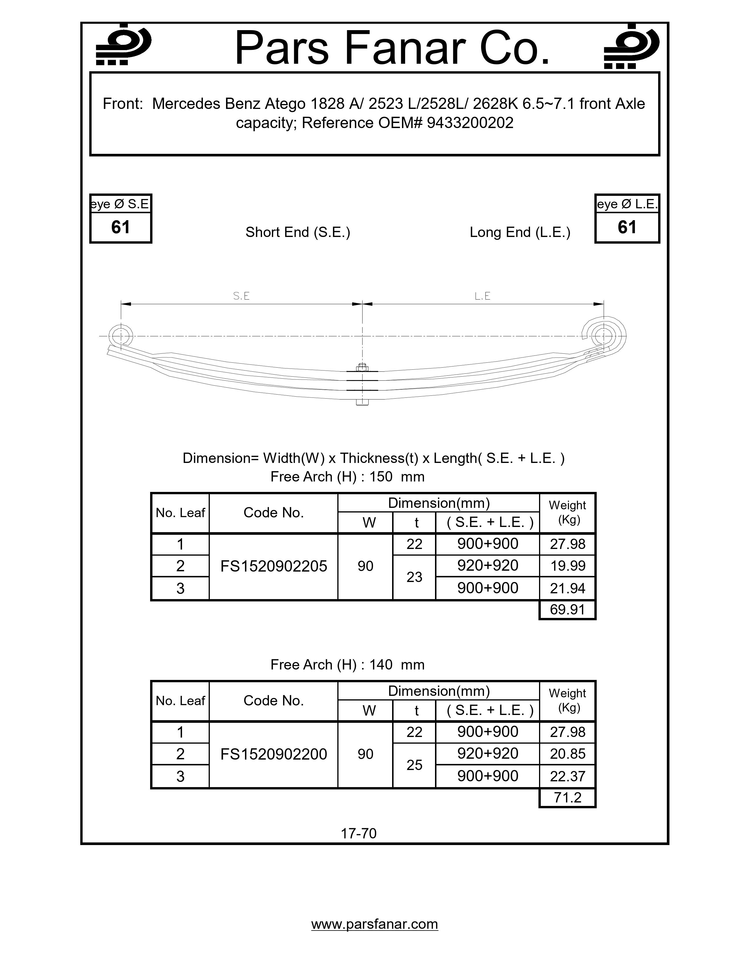 دست فنر پارابولیک چرخ جلو Mercedes Benz Atego 1828