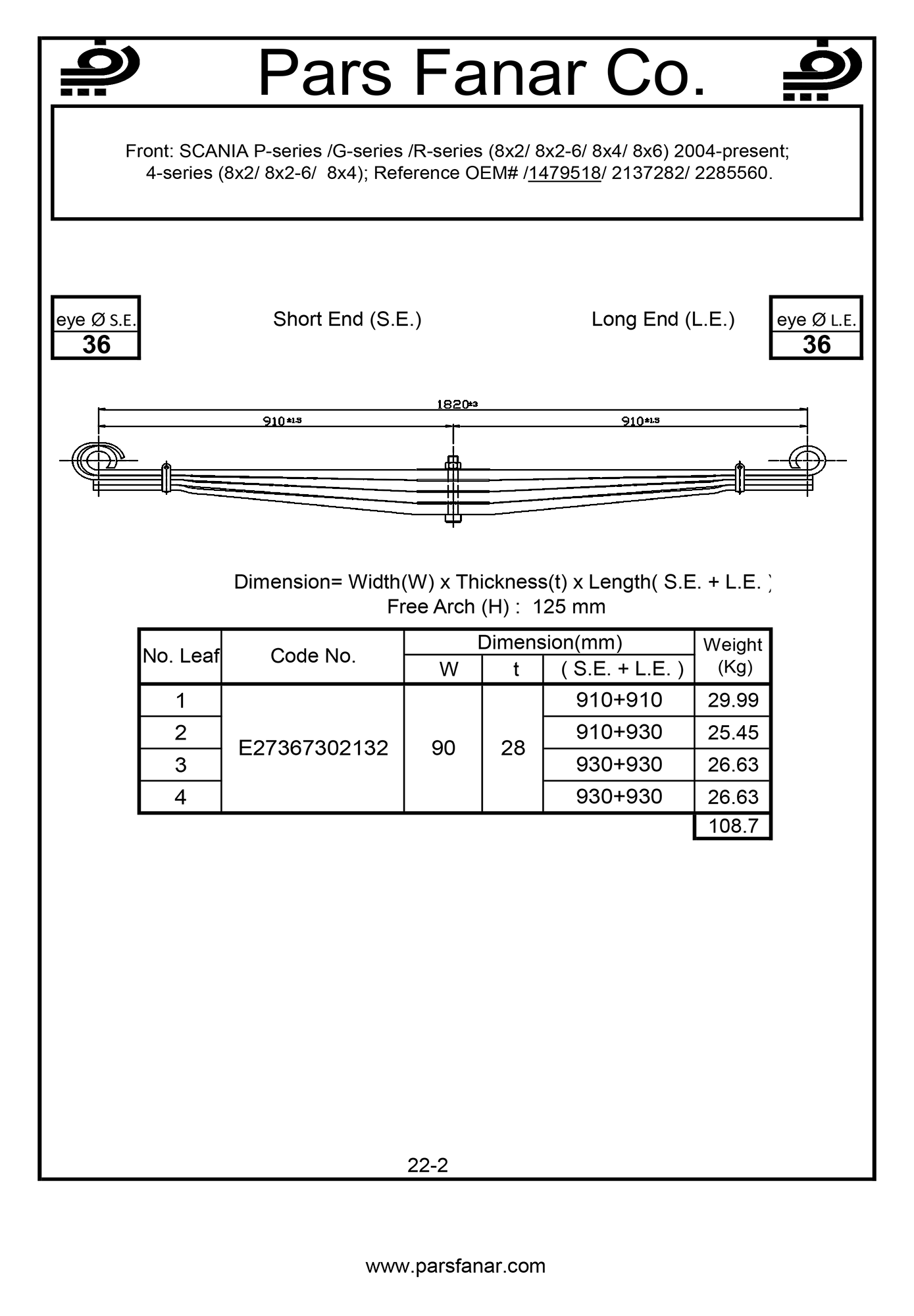 | نام خودرو/کابین/تریلی | SCANIA P-Series /G-Series /R-Series (8×2/ 8×2-6/ 8×4/ 8×6) 2004-present4-series (8×2/ 8×2-6/ 8×4) |