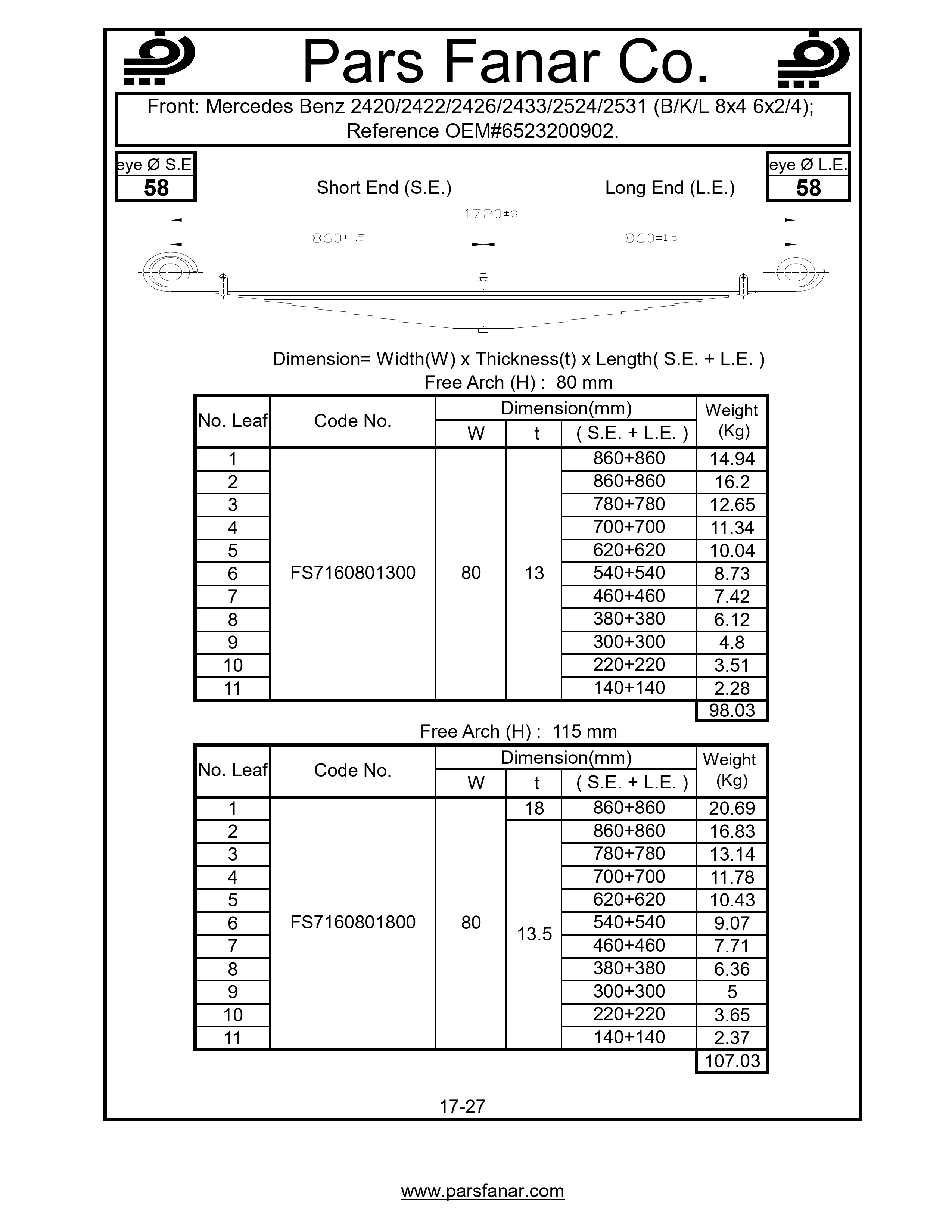 دست فنر چرخ جلو Mercedes Benz