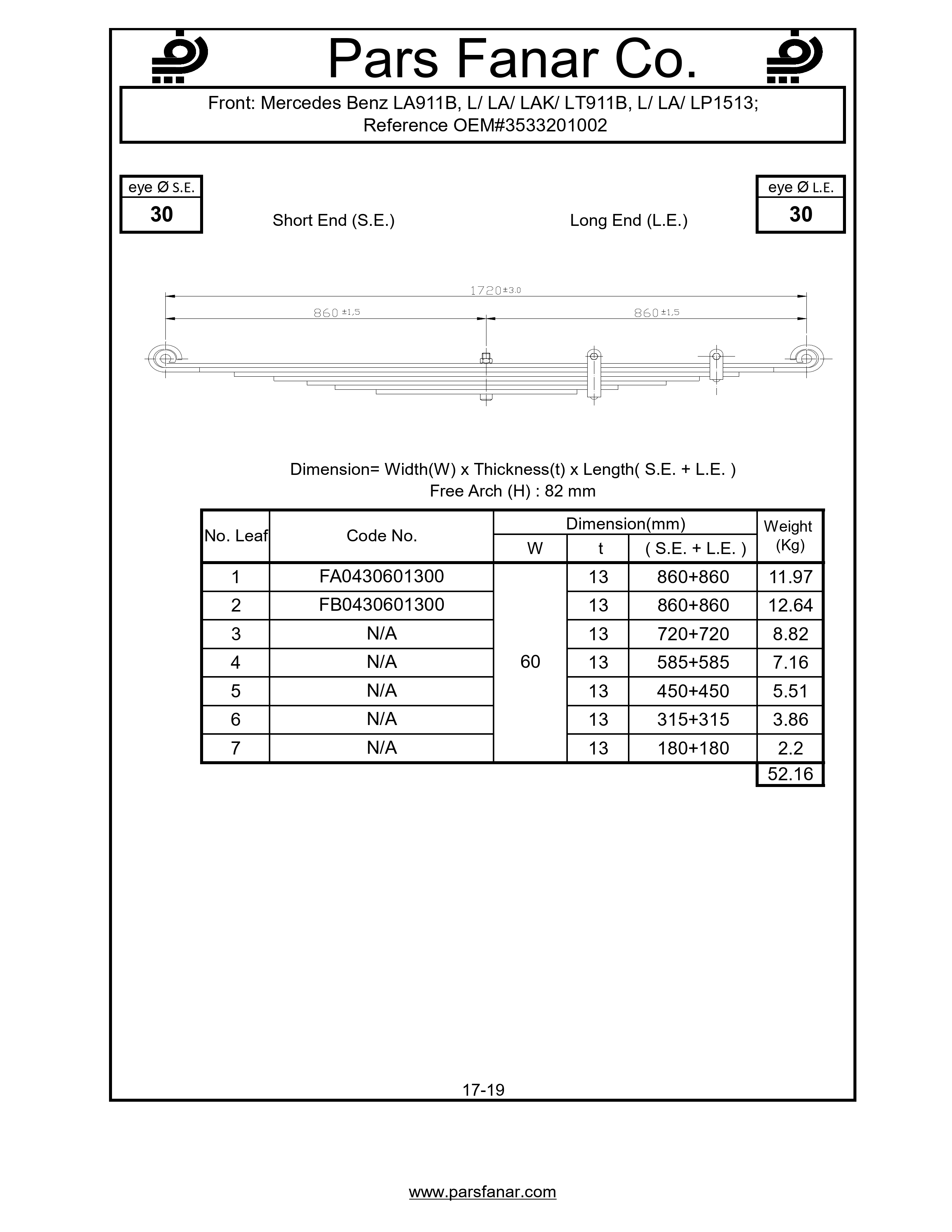 | تعداد لایه های اصلی (M) فنر تخت | |