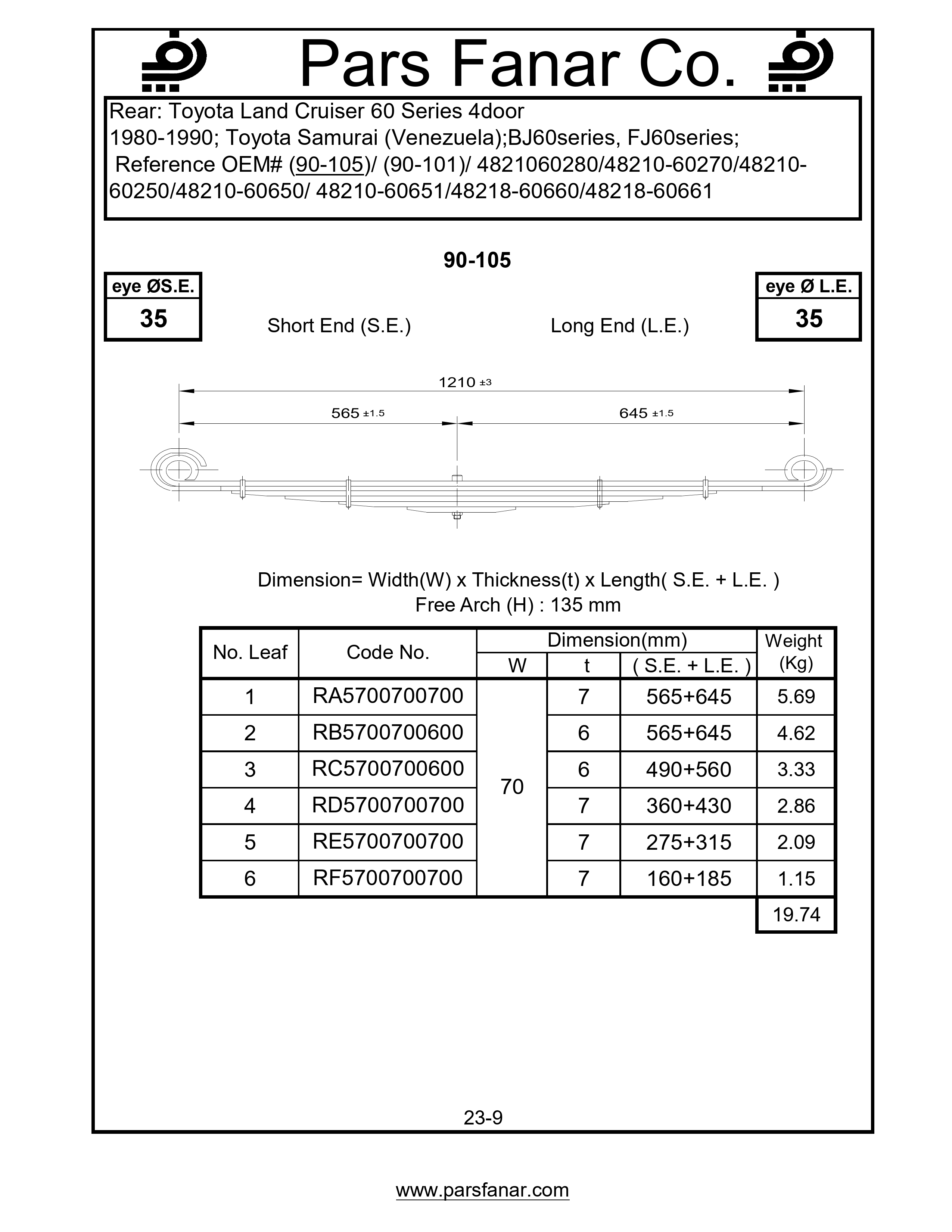 Reference OEM# (90-105)/ (90-101)/ 4821060280/48210-60270/48210-60250/48210-60650/ 48210-60651/48218-60660/48218-60661