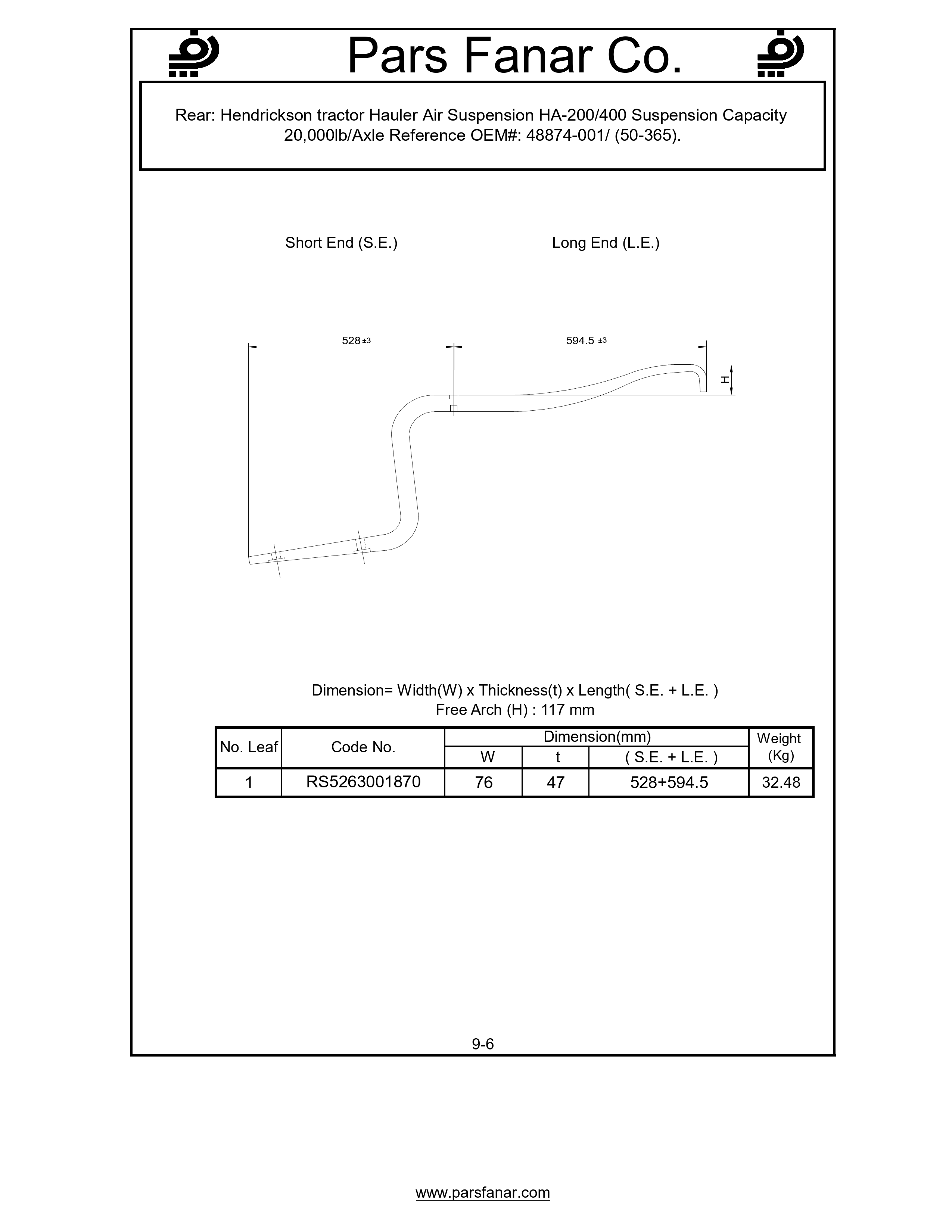 | طول لبه کوتاه (SE) فنر تخت | |