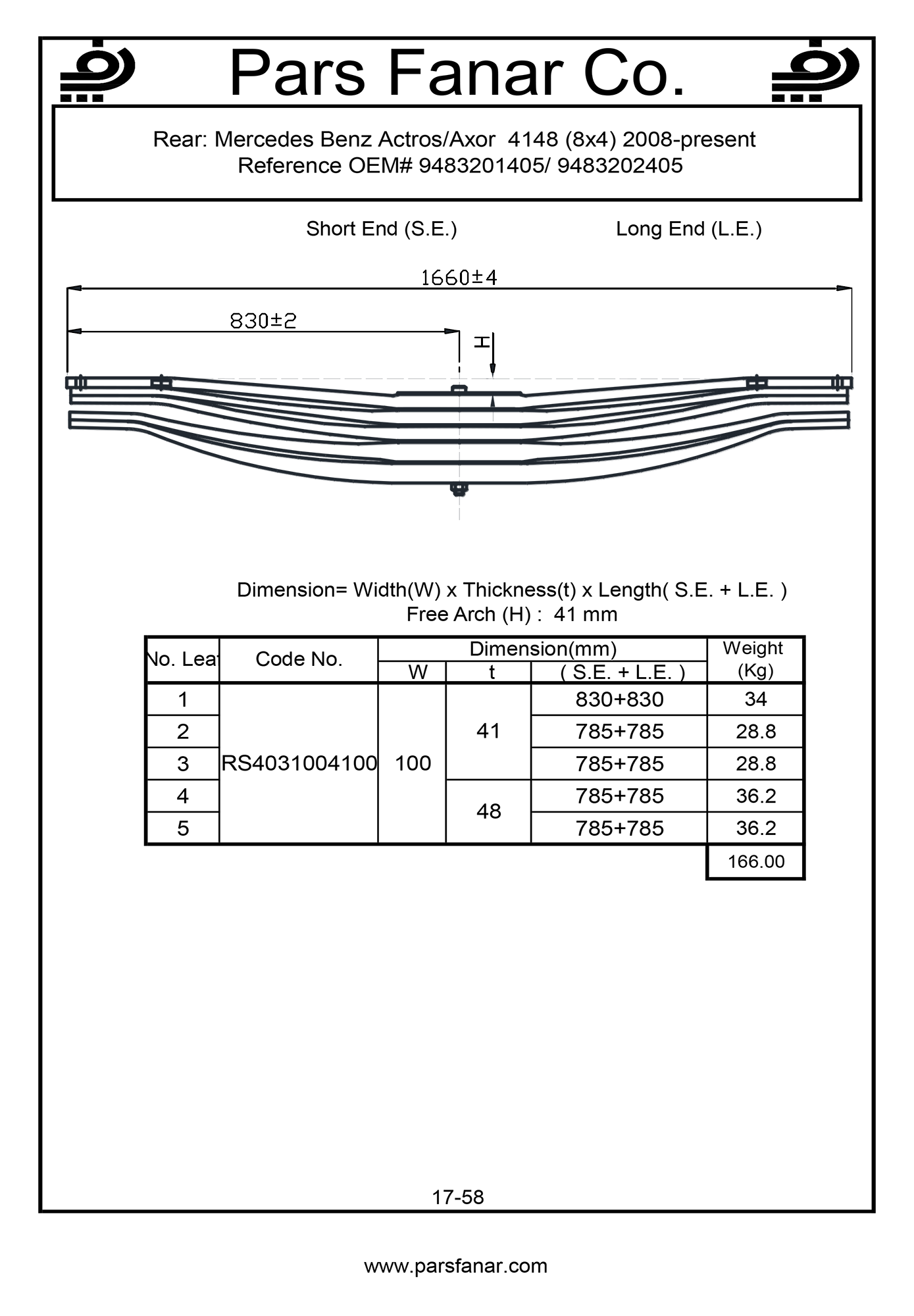 | طول لبه کوتاه (SE) فنر تخت | |